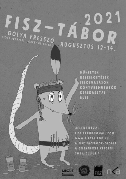 A Fiatal Írók Szövetsége (FISZ) kilencedik alkalommal rendezi meg nyári táborát, idén, ha nem is a szokványos módon, de találkozni fogunk a budapesti Gólyában (Orczy út 46–48.) 2021. augusztus 12–14. között. A háromnapos irodalmi rendezvény számos szakmai programot tartogat: az érdeklődők Dániel Andrással, Enyedi Ildikóval, Szüts Miklóssal, Vojnich Erzsébettel és Wilhelm Drostéval hallgathatnak beszélgetéseket délutánonként. Napközben líra-, próza-, kritika-, gyermek és ifjúsági irodalmi műhelyekben dolgozhatnak a jelentkezők, este szakmai beszélgetéseken, bemutatókon, társművészeti programokon vehetnek részt – így például a PesText workshopon.