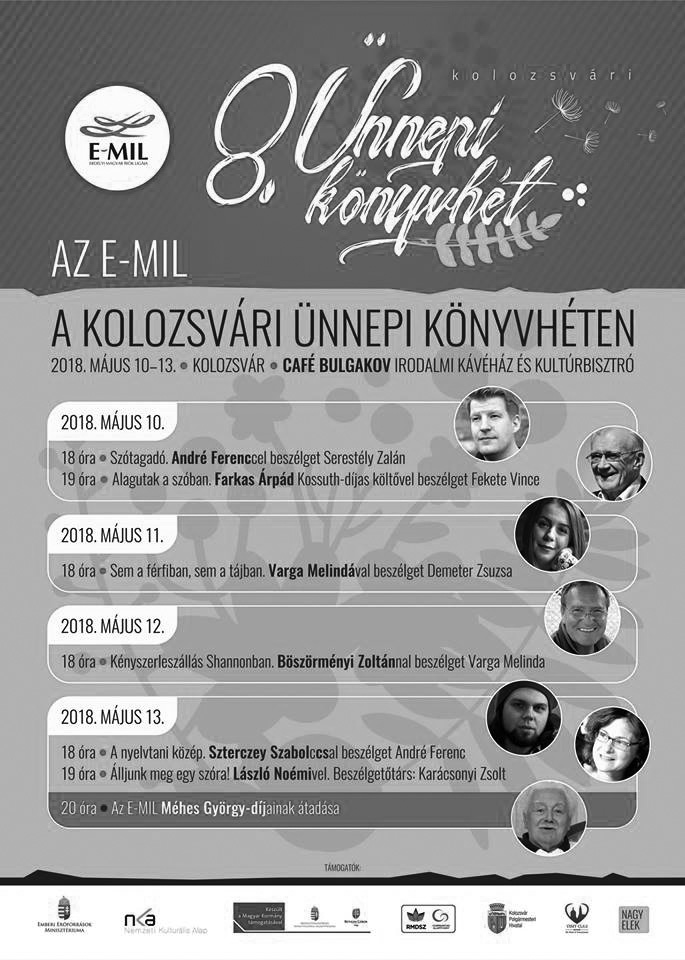 Idén is számos E-MIL rendezvény közül válogathatnak az érdeklődők a 8. Kolozsvári Ünnepi Könyvhéten. A rendezvények a Bulgakov Kávézóban (I.M. Klein 17.) zajlanak.