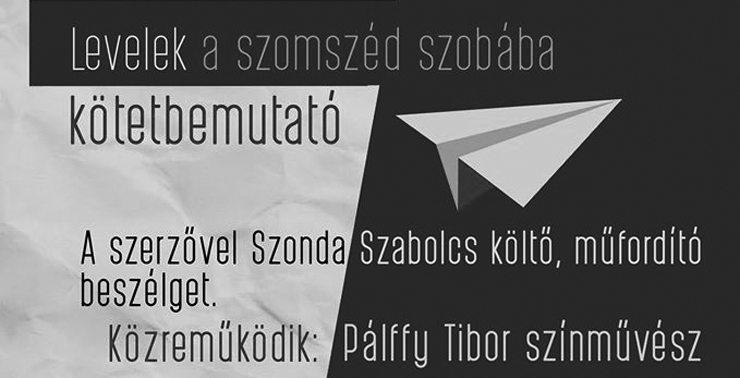 A szerzővel Szonda Szabolcs költő, műfordító beszélget, közreműködik Pálffy Tibor színművész.