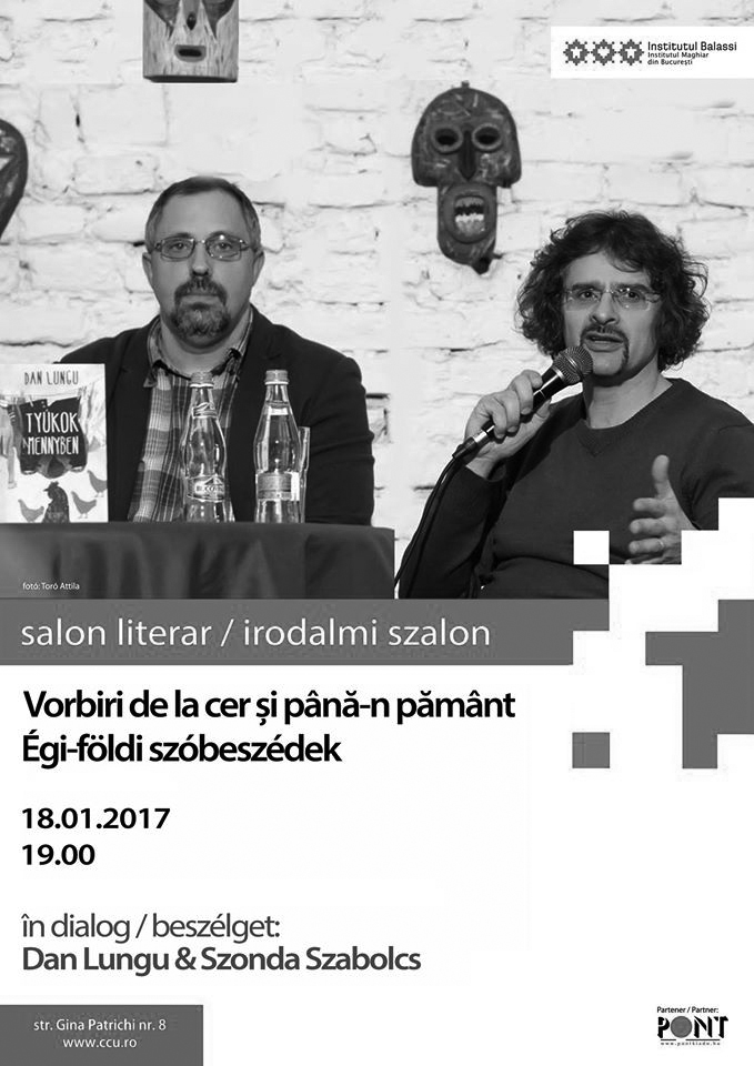 Az Irodalmi Szalon kertein belül Dan Lungu író és fordítója, Szonda Szabolcs beszélget a Tyúkok a mennyben / Raiul găinilor című regény olvasóival. A könyv, amely négy hónapig vezette a francia Jacqueline Chambon Kiadó eladási listáját, A Hónap Könyve volt Németországban, több kiadást ért meg, és szlovénul, olaszul, lengyelül, spanyolul, bolgárul, illetve Szonda Szabolcs fordításában magyarul is olvasható.