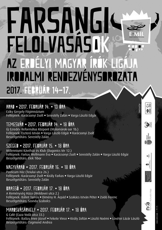 Az Erdélyi Magyar Írók Ligája felolvasókörutat szervez Farsangi felolvasások címmel. A rendezvénysorozat több helyszínen fog megvalósulni.
