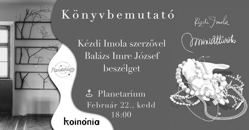 Február 22-én, kedden délután hat órától mutatják be Kézdi Imola Miniallűrök című kötetét Kolozsváron, a Planetariumban.