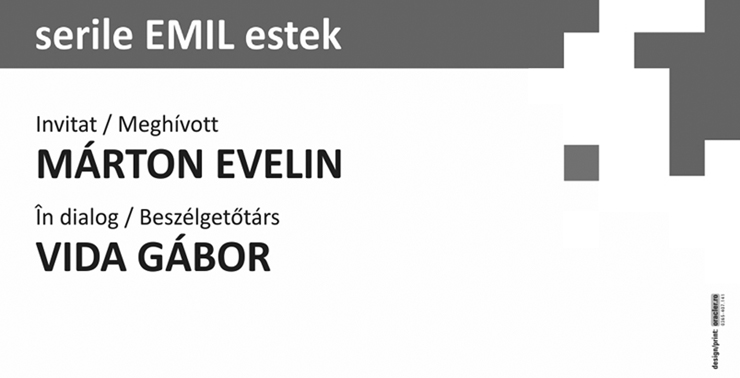 Az Erdélyi Magyar Írók Ligája és a Balassi Intézet közös E-MIL estek Bukarestben című rendezvénysorozatának következő meghívottja Márton Evelin író. A szerzővel Vida Gábor beszélget.