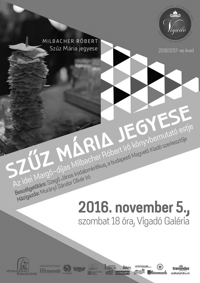 Erdélyi körútján Milbacher Róbert beszélgetőtársa Szegő János irodalomkritikus, a Magvető Kiadó szerkesztője. A rendezvény házigazdája Murányi Sándor Olivér író, támogatói a Szépírók Társasága, a G. Kulturális Egyesület, valamint a Gondűző Étterem és Szálloda, a Kájoni János Megyei Könyvtár, a Vigadó Művelődési Ház, a Tein Teahouse és a Bod Péter Megyei Könyvtár. A szerző kötetei a helyszínen kedvezményesen megvásárolhatóak, dedikálja őket. Mindenkit szeretettel várnak.