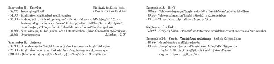 Tamási Áron-emléknapokat tartanak Farkaslakán szeptember 16-20. között. A Magyar Művészeti Akadémia Művészetelméleti Tagozatának szervezésében 2016. szeptember 30-án került megrendezésre a Pesti Vigadó Makovecz termében a Jégtörő írók című emlékülés, amely Tamási Áron és Sütő András munkásságát elemezte, elsődleges apropója Tamási Áron halálának ötvenedik, Sütő András halálának pedig tizedik évfordulója volt. A konferencia előadásainak anyagából 2017-ben konferencia-kiadvány jelent meg. 2017. szeptember 16-án a Tamási-emléknapokon Farkaslakán is bemutatásra kerül ez a kiadvány. Az erdélyi könyvbemutató körút keretében a Magyar Művészeti Akadémia küldöttsége megkoszorúzza Sütő András és Tamási Áron sírhelyét.